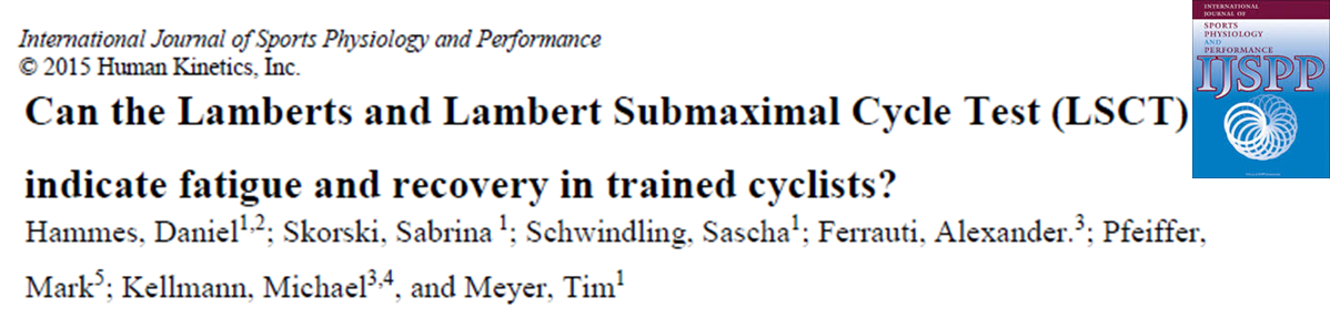 D. Hammes, S Skorski, S Schwindling, A Ferrauti, M. Pfeiffer, M Kellmann, T Meyer. Can the Lamberts and Lambert SubmaximalCycle Test (LSCT)