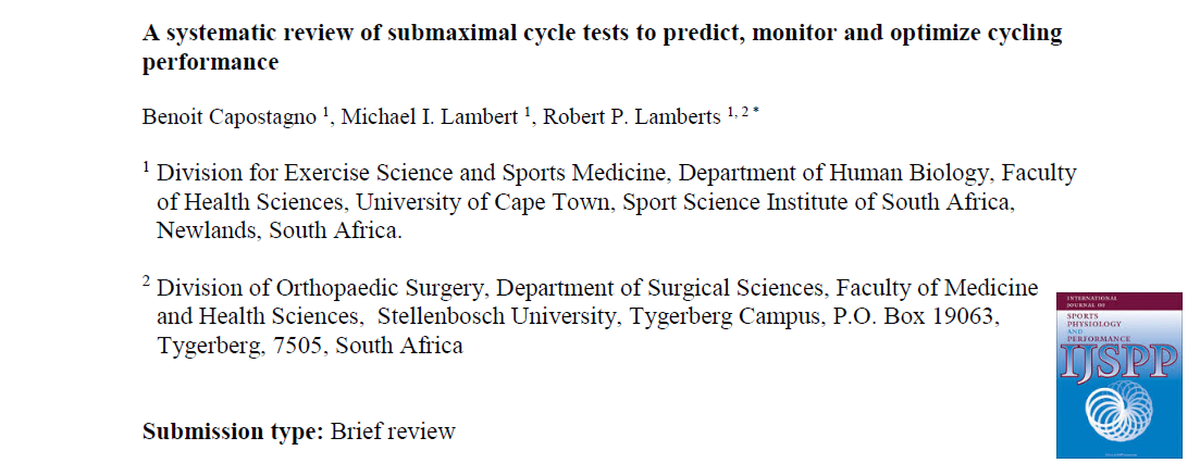 R.P. Lamberts ‘Short term parasympathetic reactivation after the LSCT: a practical tool to predict and monitor cycling performance’